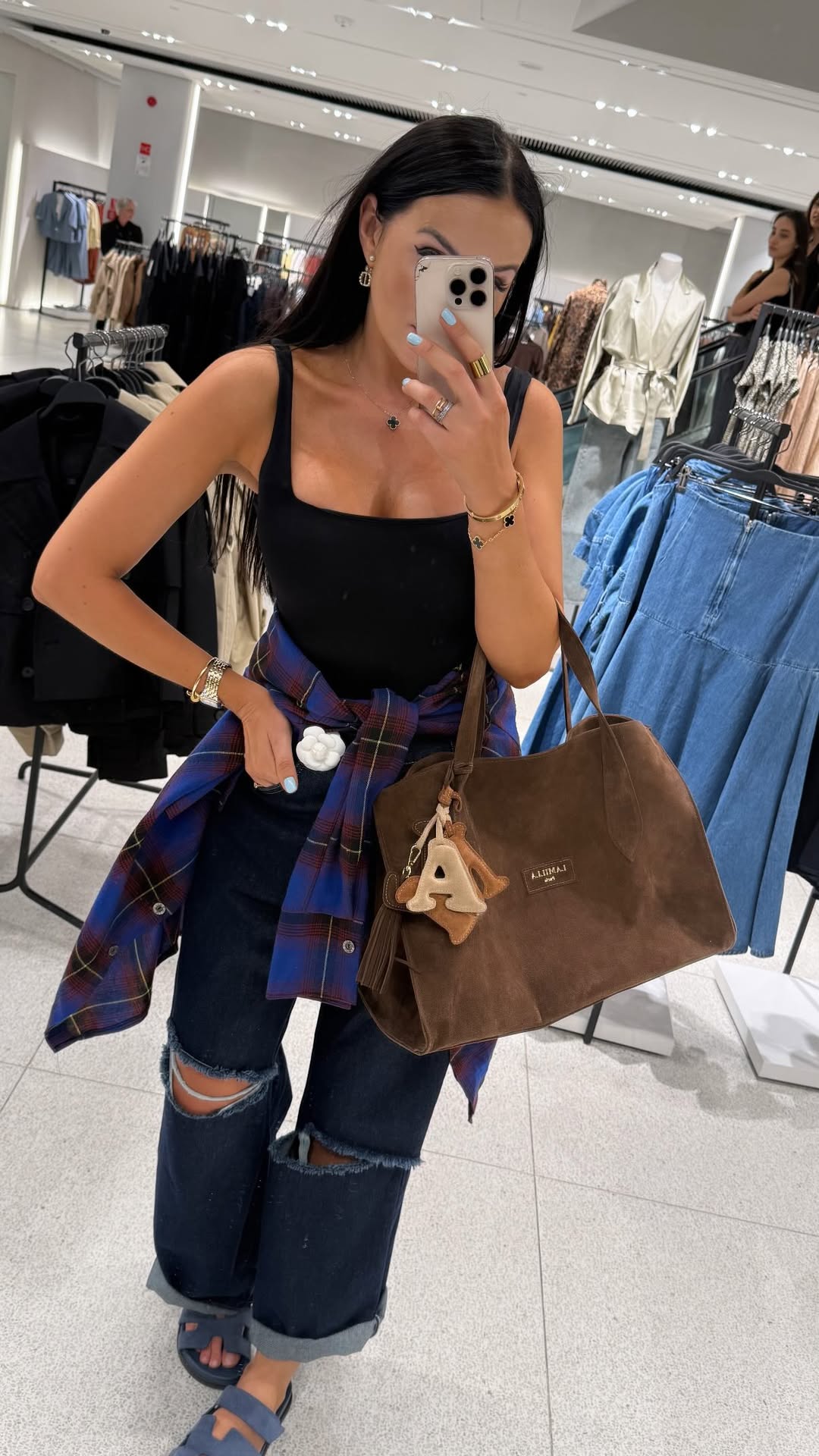 BY O LA LA...! PRĄŻKOWANA BLUZKA TOP PODWÓJNY PRZÓD GRANAT