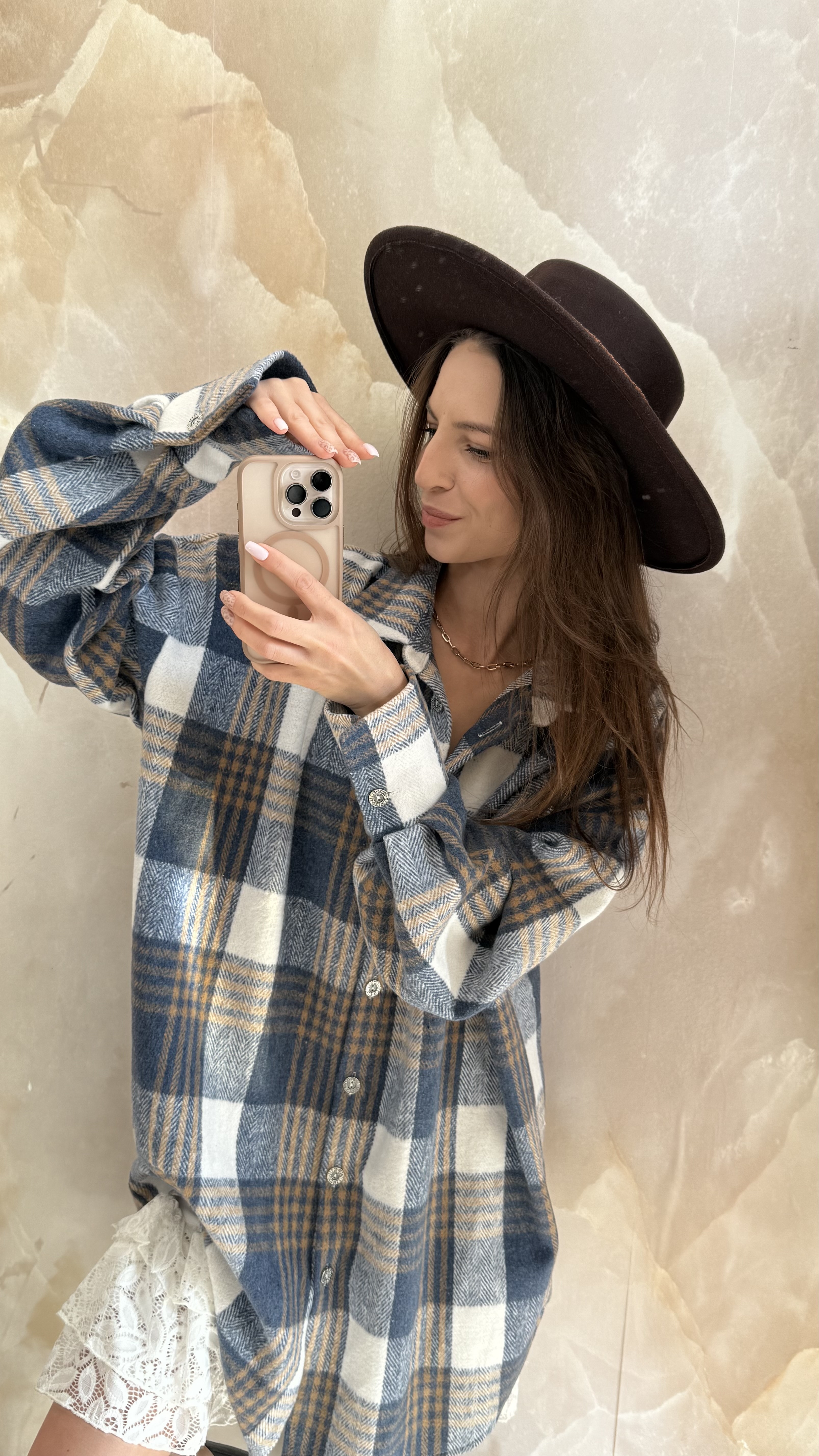 LA MILLA KOSZULOWA SUKIENKA FLANELA W KRATĘ NIEBIESKA/BEŻ/BIAŁA