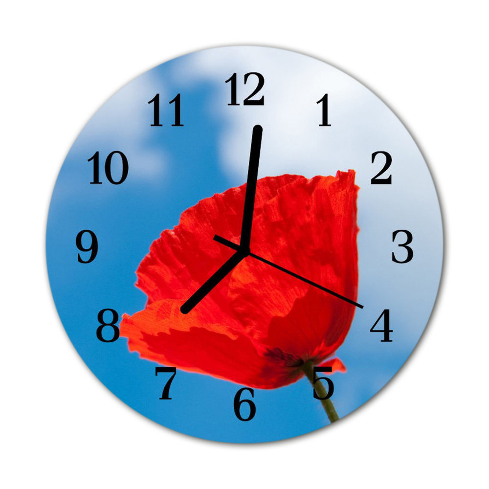 Nástenné skleněné hodiny mák fi 30 cm Černé