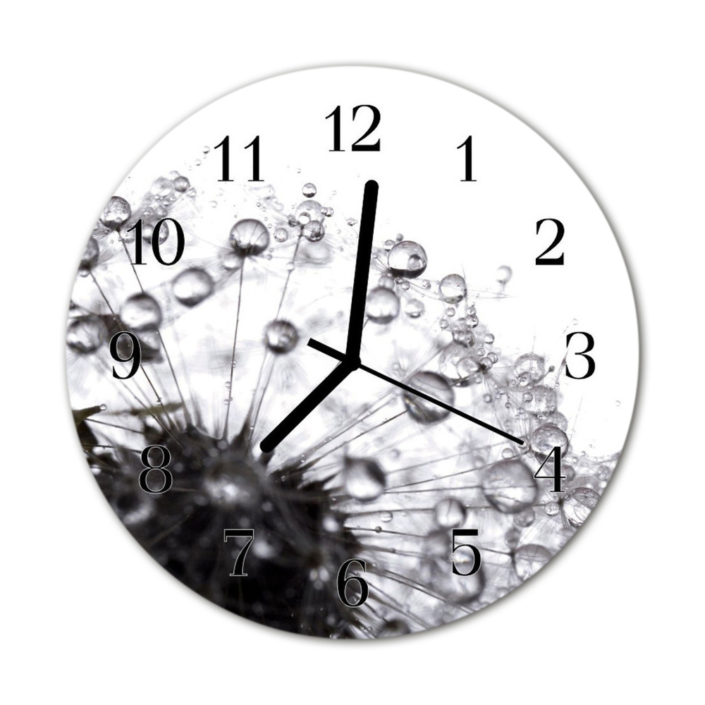 Skleněné hodiny kulaté pampeliška fi 30 cm Černé