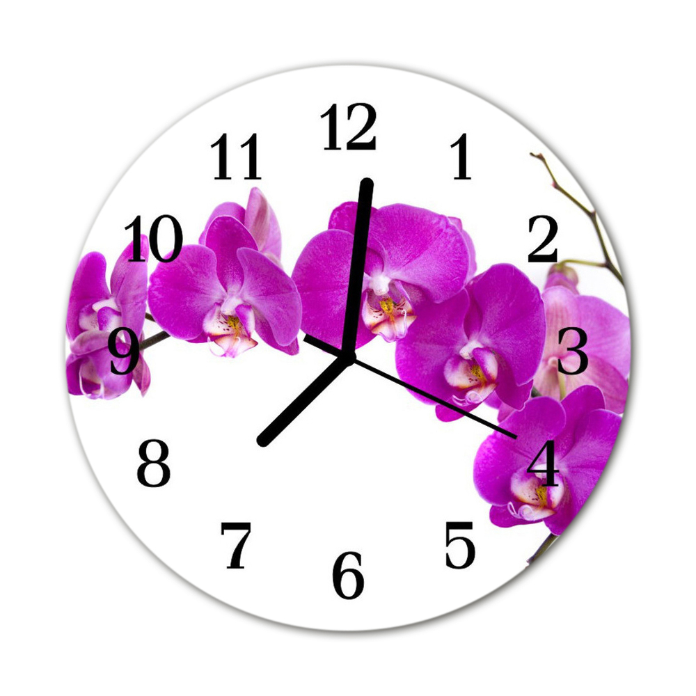 Skleněné hodiny kulaté orchideje fi 30 cm Černé