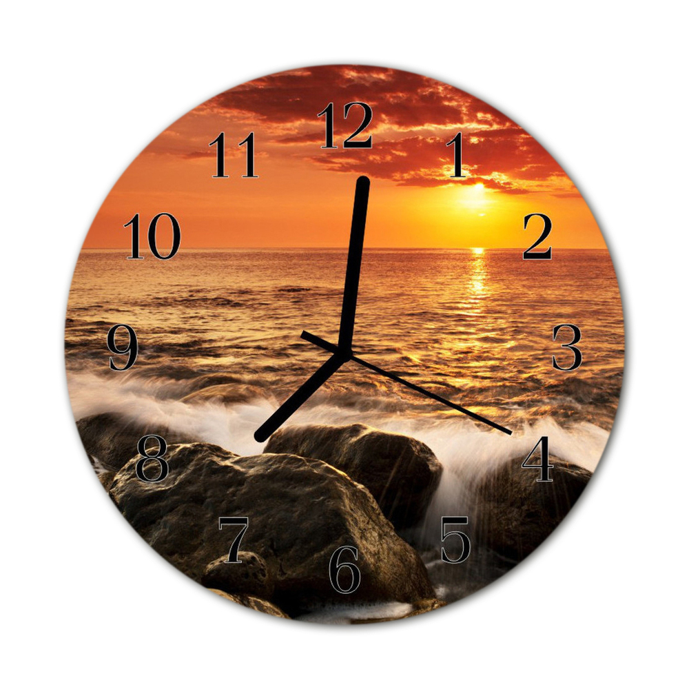 Skleněné hodiny kulaté Západ slunce fi 30 cm Černé