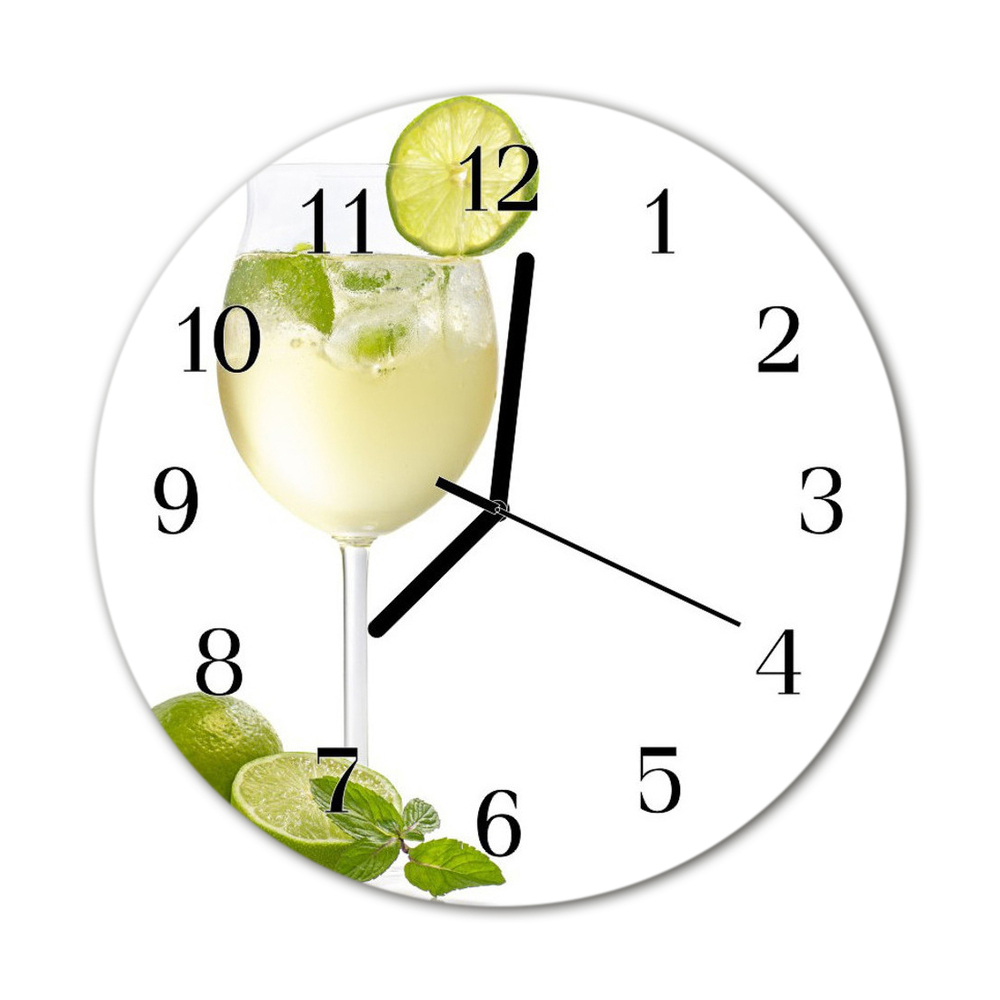 Skleněné hodiny kulaté limetkou fi 30 cm Černé