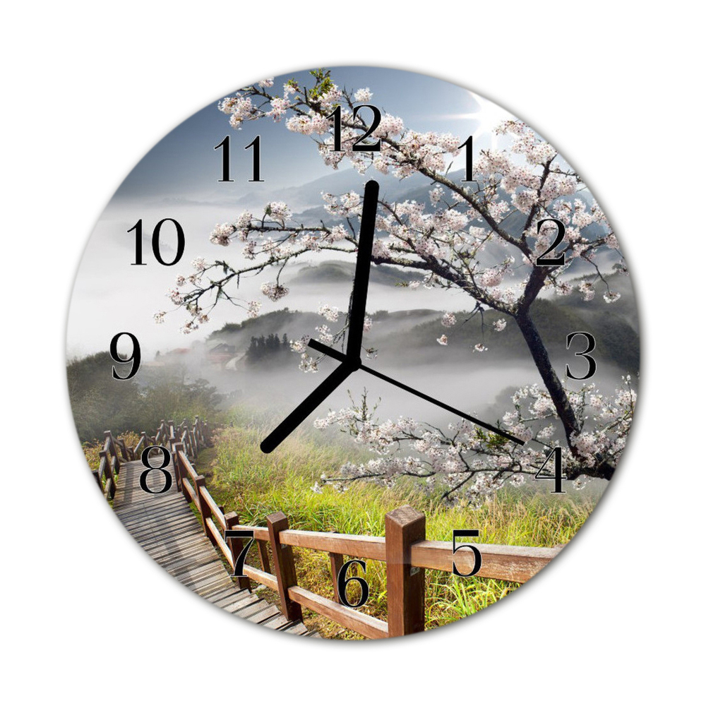 Skleněné hodiny kulaté strom fi 30 cm Černé