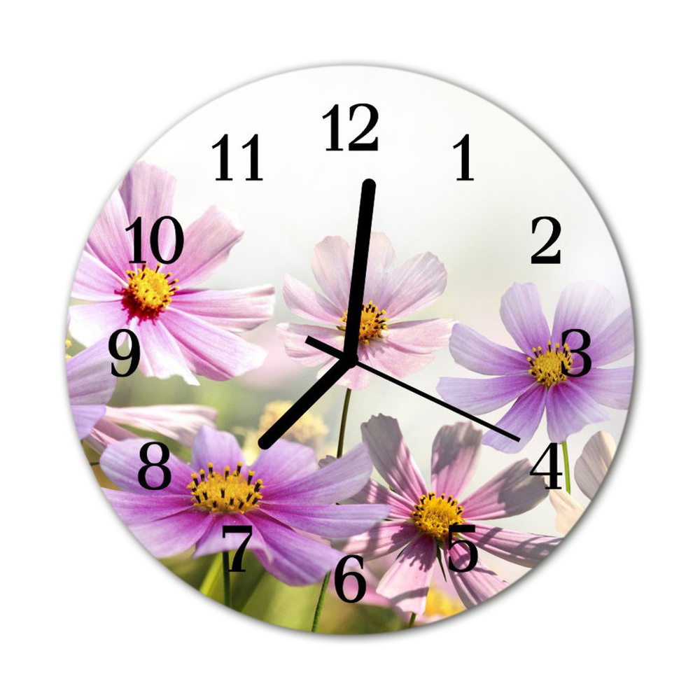 Nástenné skleněné hodiny květiny fi 30 cm Černé