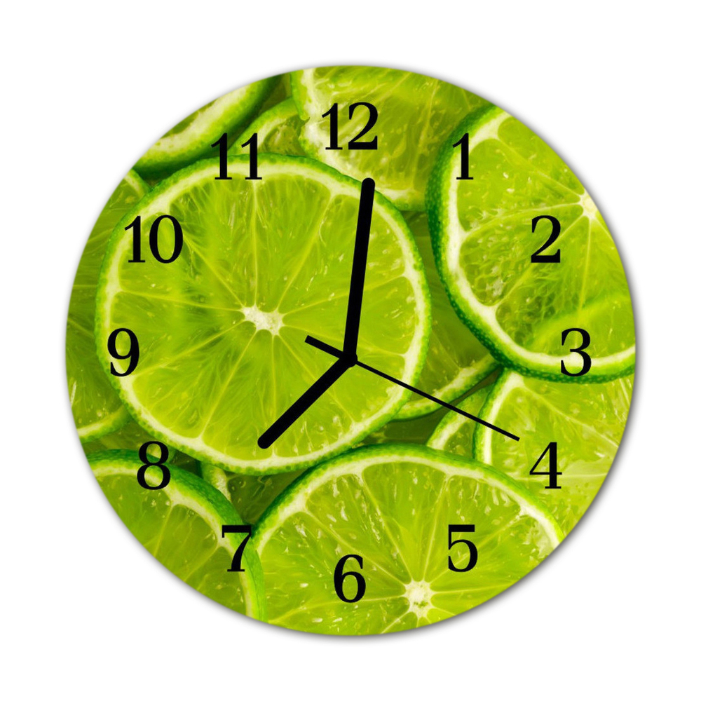 Nástenné skleněné hodiny limetkou fi 30 cm Černé