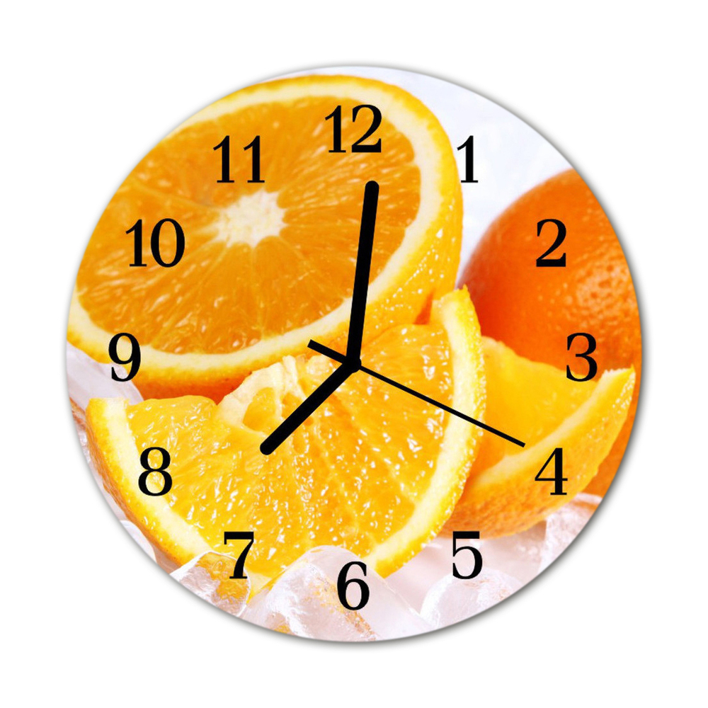 Nástenné skleněné hodiny pomeranče fi 30 cm Černé