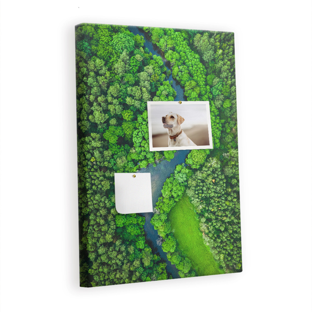Nástěnka do dětského pokoje Řeka v lese 40x60 cm Barevné připínáčky