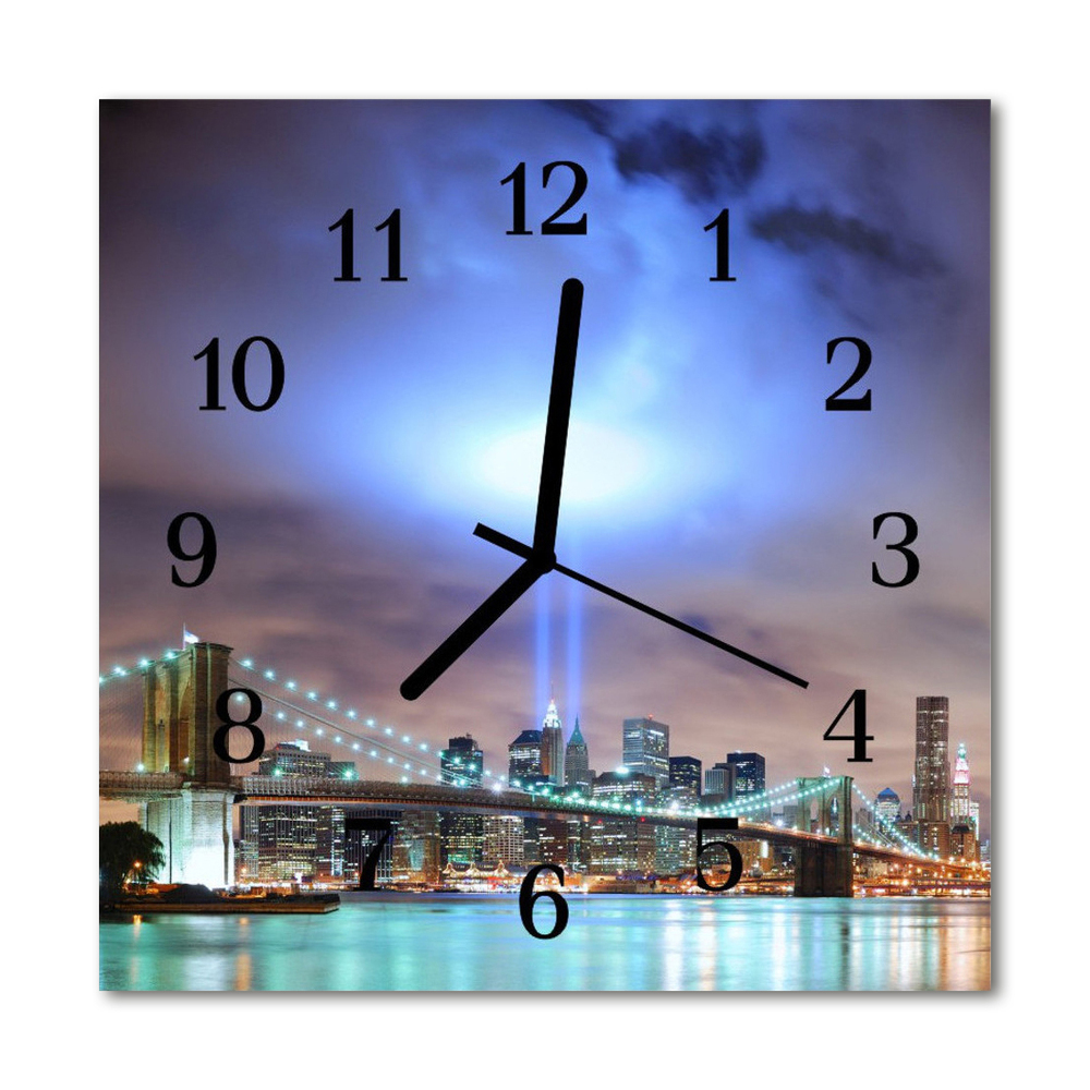 Skleněné hodiny čtvercové Noční město 30x30 cm Černé