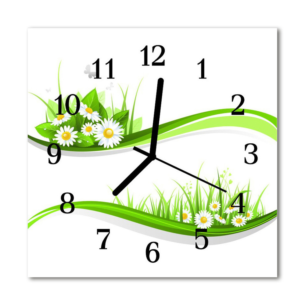 Skleněné hodiny čtvercové sedmikráska 30x30 cm Černé