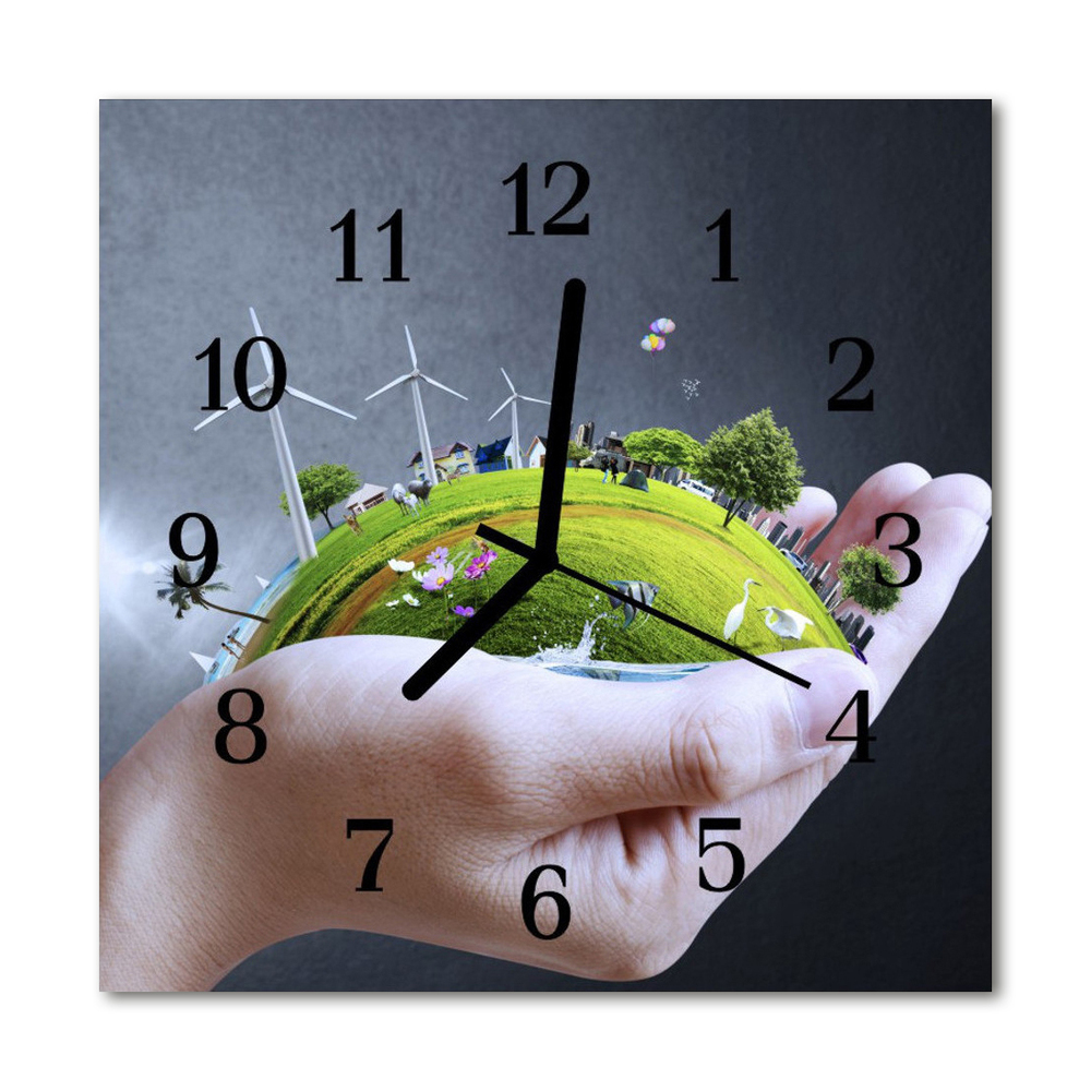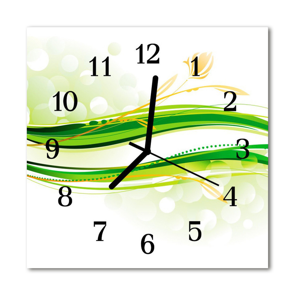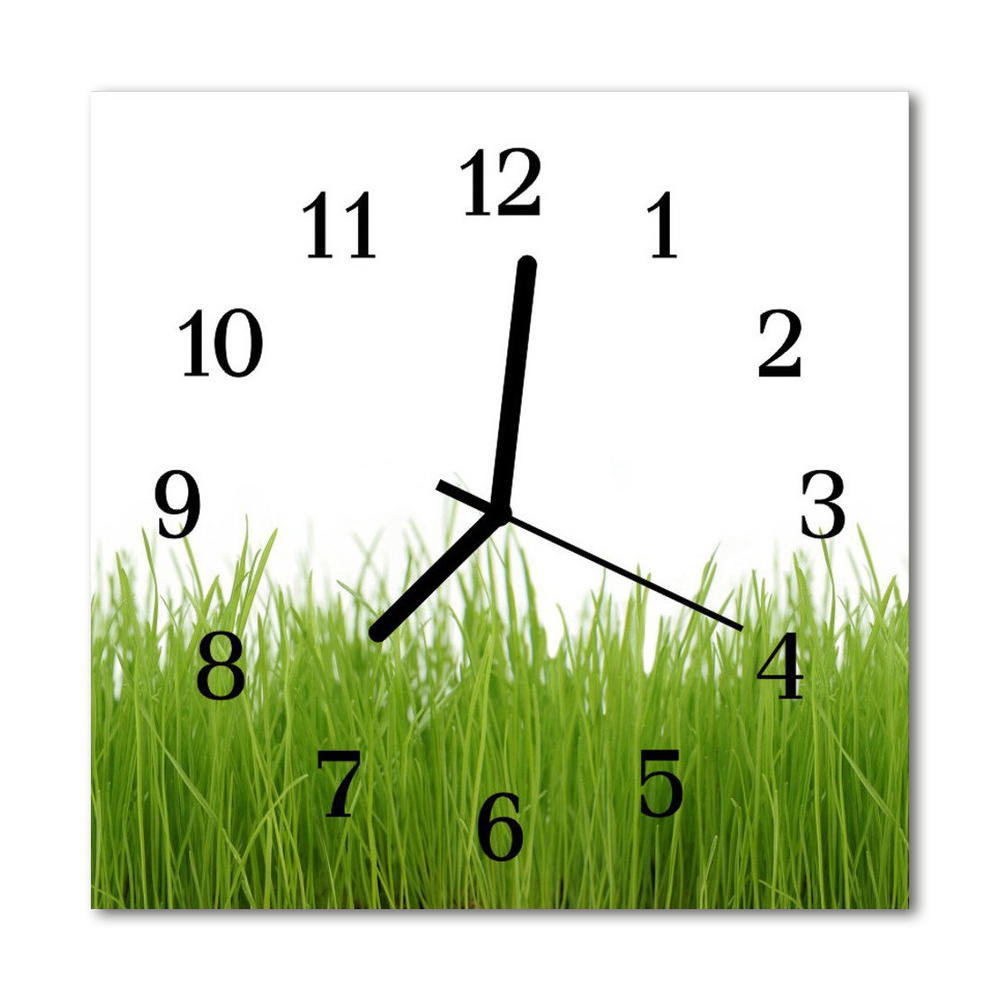 Skleněné hodiny čtvercové tráva 30x30 cm Černé