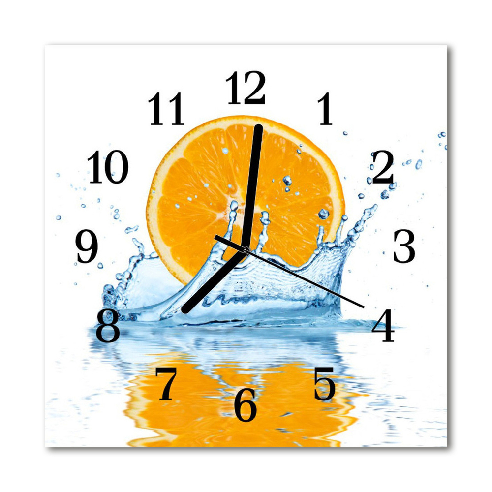 Skleněné hodiny čtvercové Oranžová voda 30x30 cm Černé