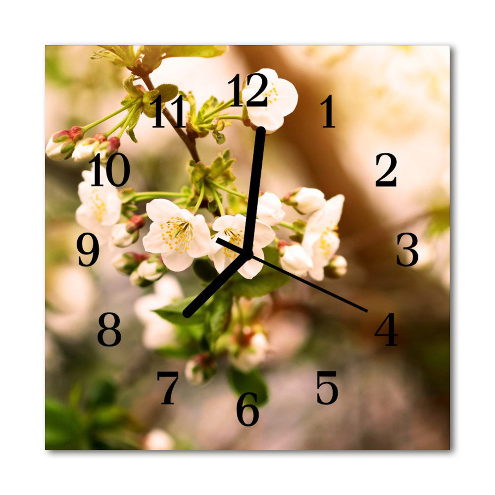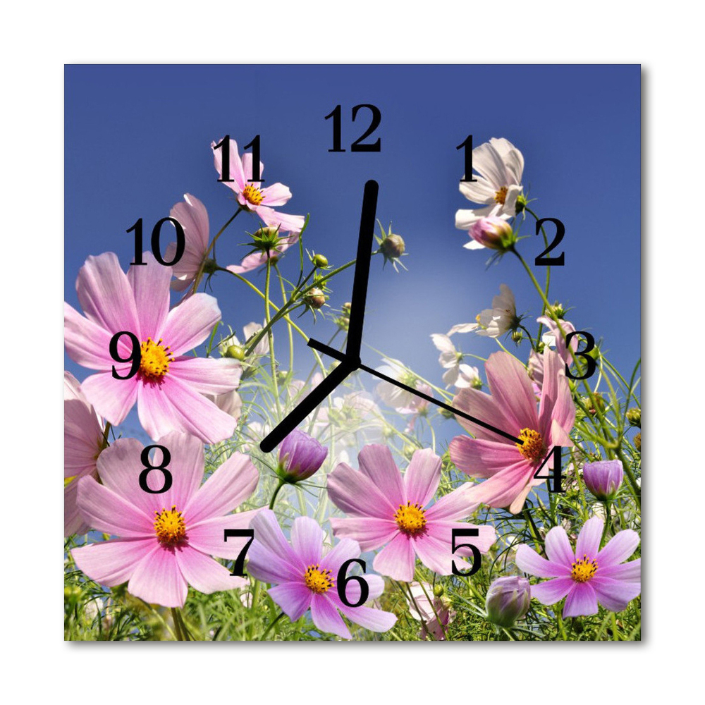 Skleněné hodiny čtvercové Květiny Cosmos 30x30 cm Černé