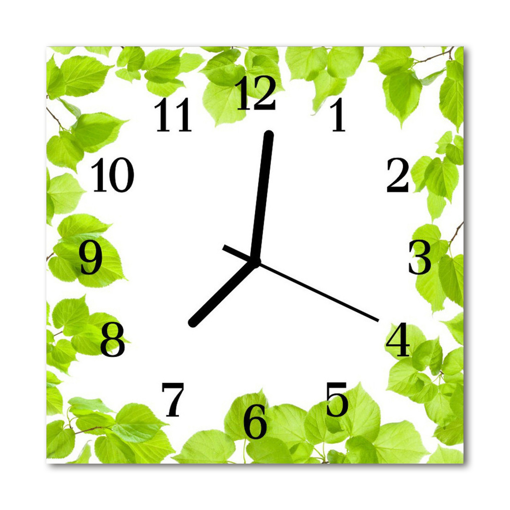 Skleněné hodiny čtvercové olistění 30x30 cm Černé