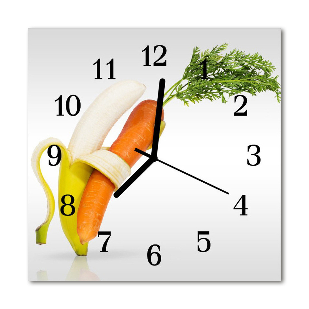 Nástenné skleněné hodiny Mrkev banán 30x30 cm Černé