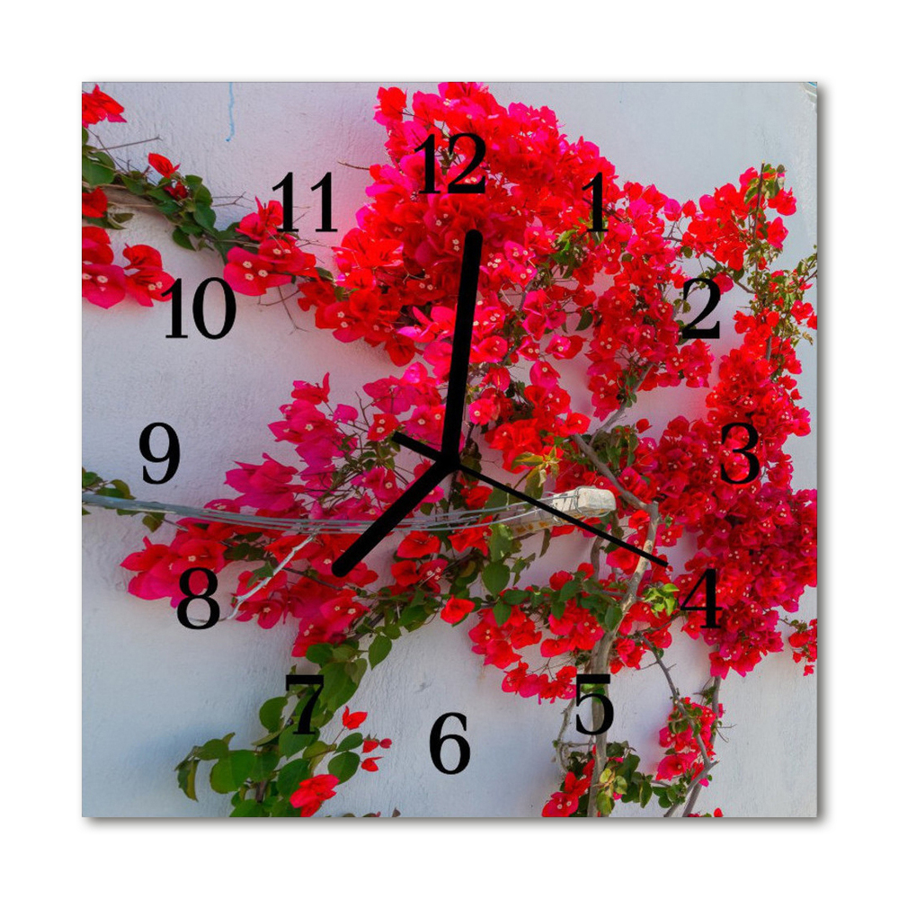 Skleněné hodiny čtvercové květiny 30x30 cm Černé