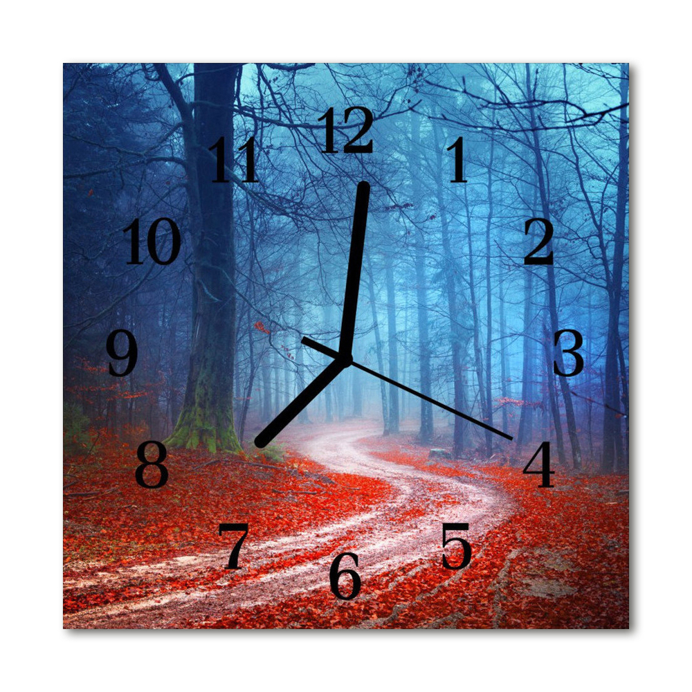 Nástenné skleněné hodiny Lesní cesta 30x30 cm Černé
