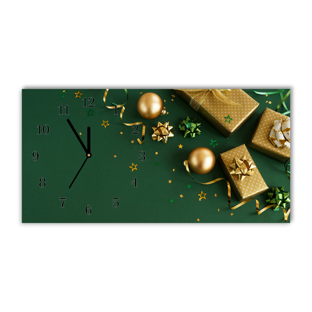 Glass Wall Clock Horizontal Holy Father Christmas Gifts 24x12 in (60x30 cm) Black Clock Hands
