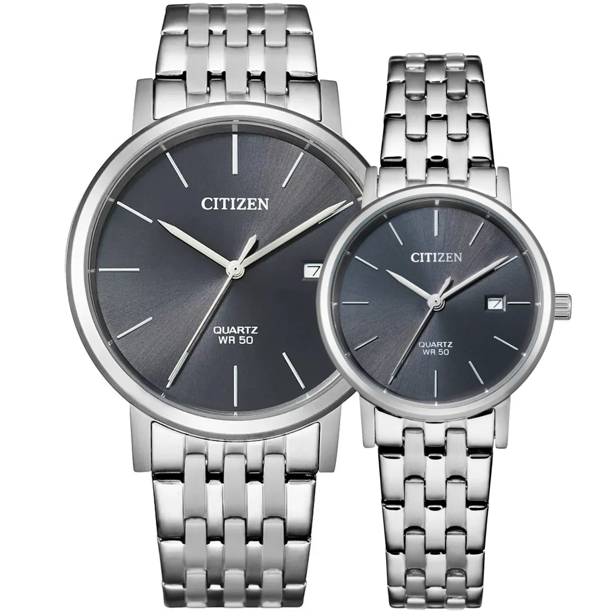 zestaw Citizen zegarki dla par analogowe zestaw na bransolecie szare