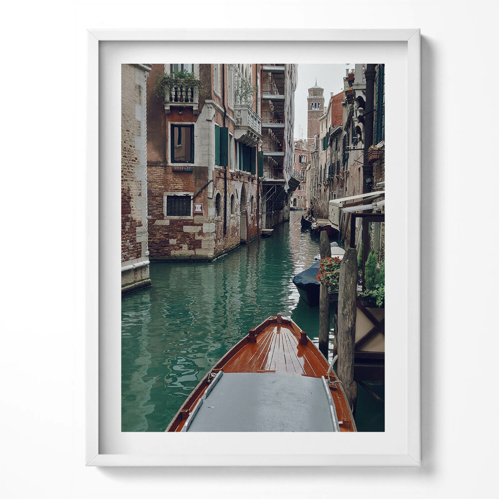 Kép keretben Hajó a velencei csatornák között Fehér 60x80 cm