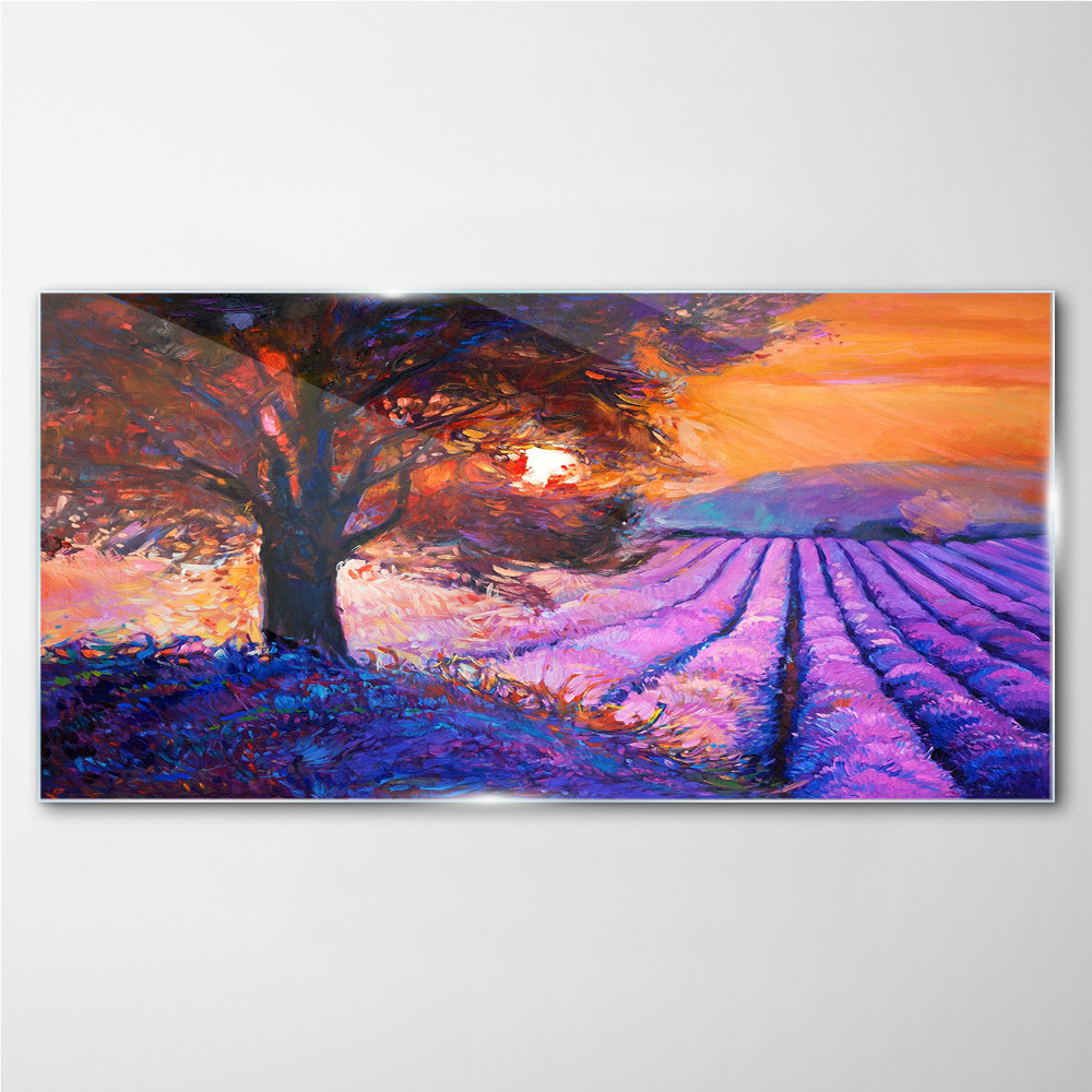 Foto op glas Paars landschap bij zonsondergang 100x50 cm - Coloray