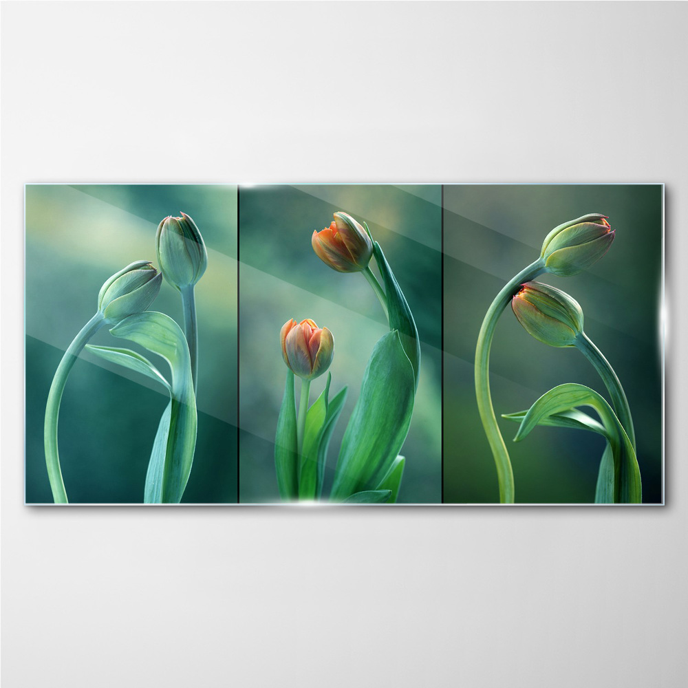Foto op glas Tulpen in tinten groen 100x50 cm - Coloray