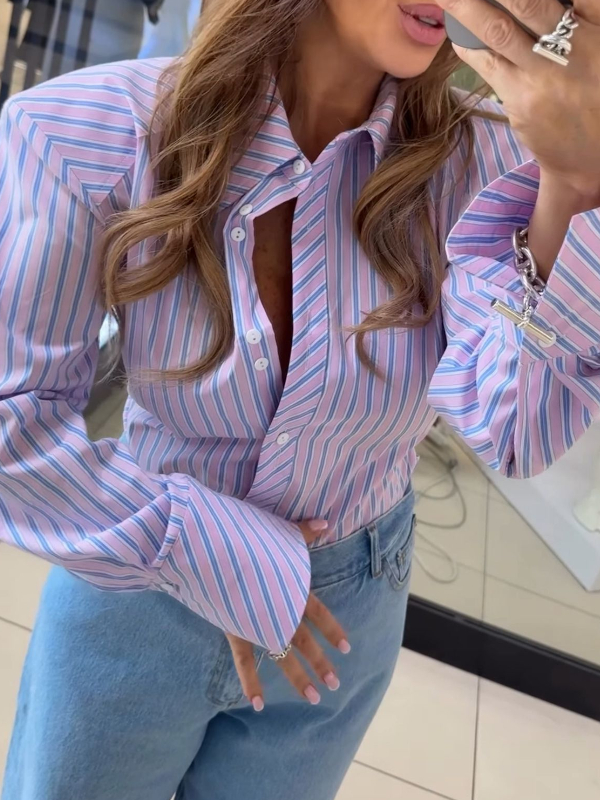 EMO ELEGANCKA KOSZULA BIG BOSS W PASY RÓŻ/NIEBIESKA/BIAŁA