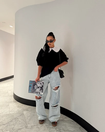 LA MILLA SPODNIE JEANSY WIDE LEG Z DZIURAMI NIEBIESKIE