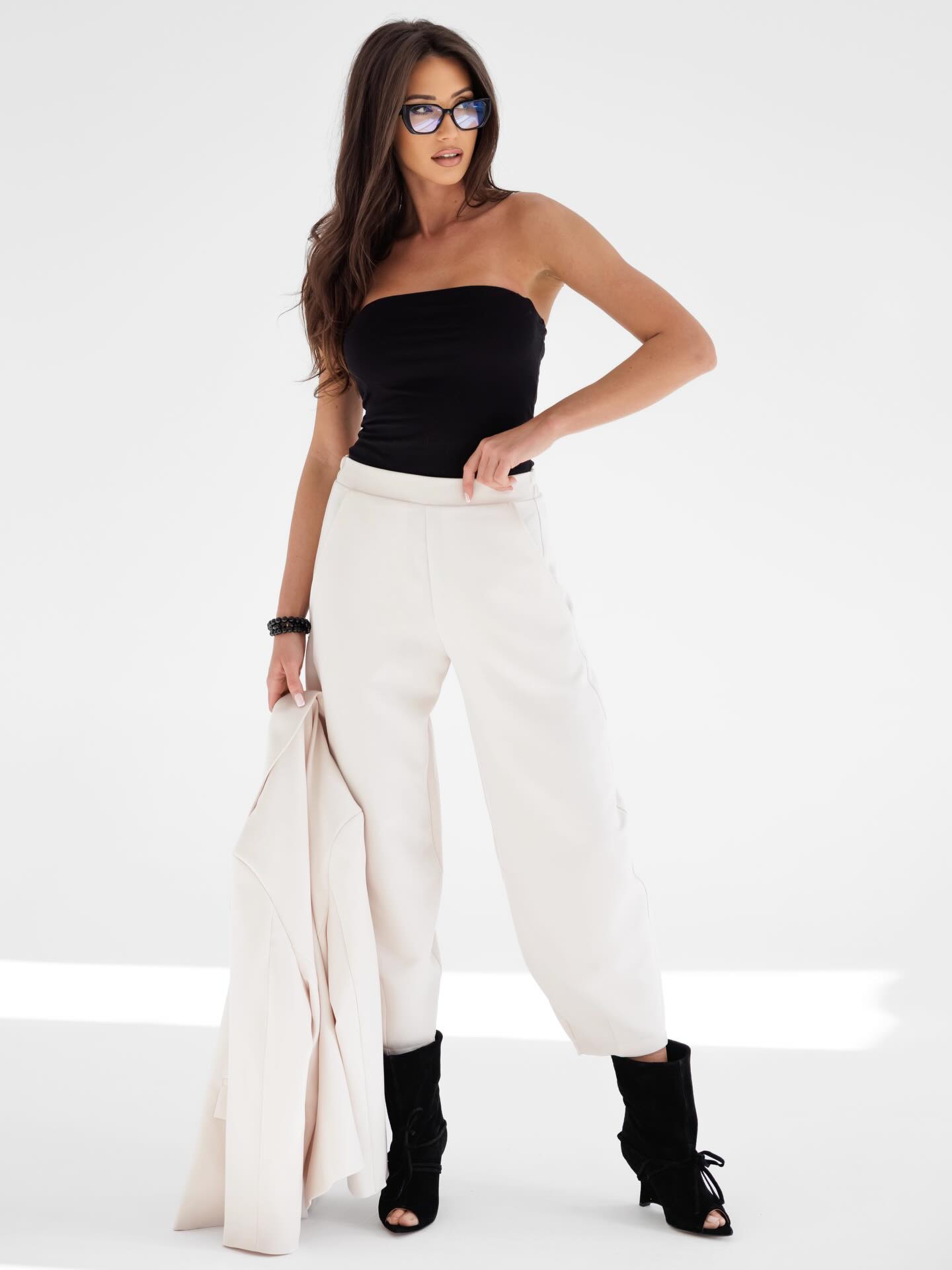 BY O LA LA ! SPODNIE DRESOWE WIDE LEG SELENA OFF WHITE