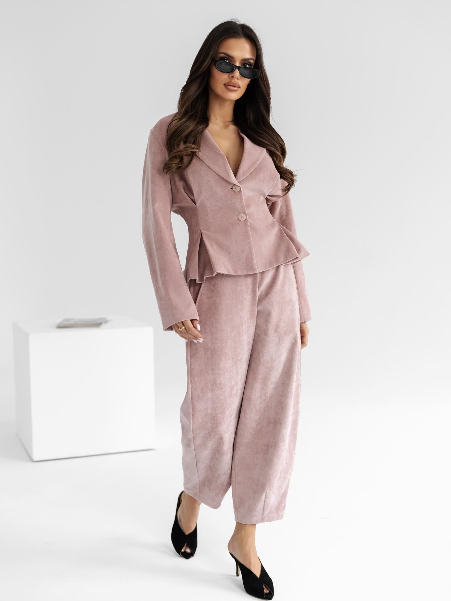 BY O LA LA! SZTRUKSOWE SPODNIE BALLOON RÓŻ