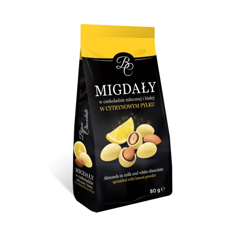 BC Migdały w czekoladzie mlecznej i białej w cytrynowym pyłku 80 g