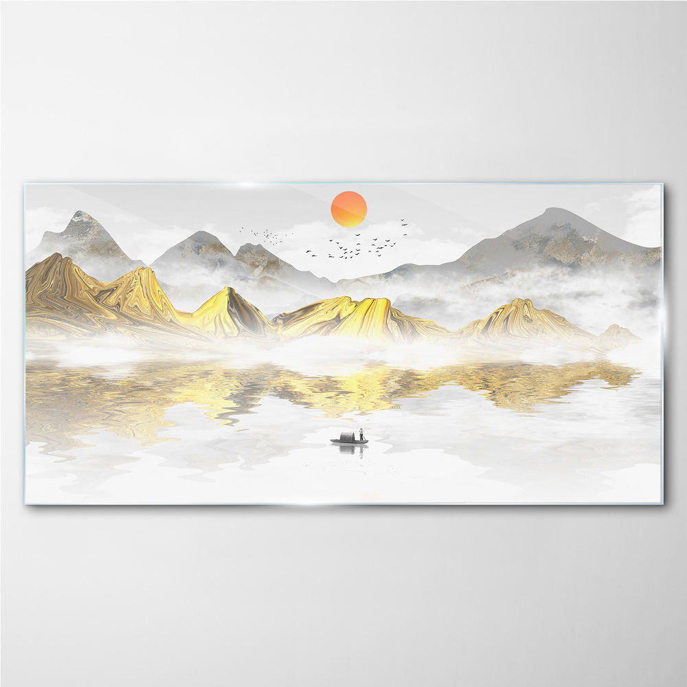 Tablou sticla Peisaj de litoral cu dealuri montane