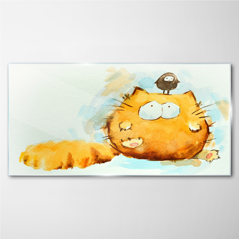 Tablou sticla Pisică cu o pasăre