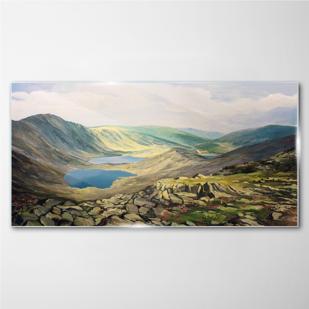 Tablou sticla Peisaj montan cu un lac