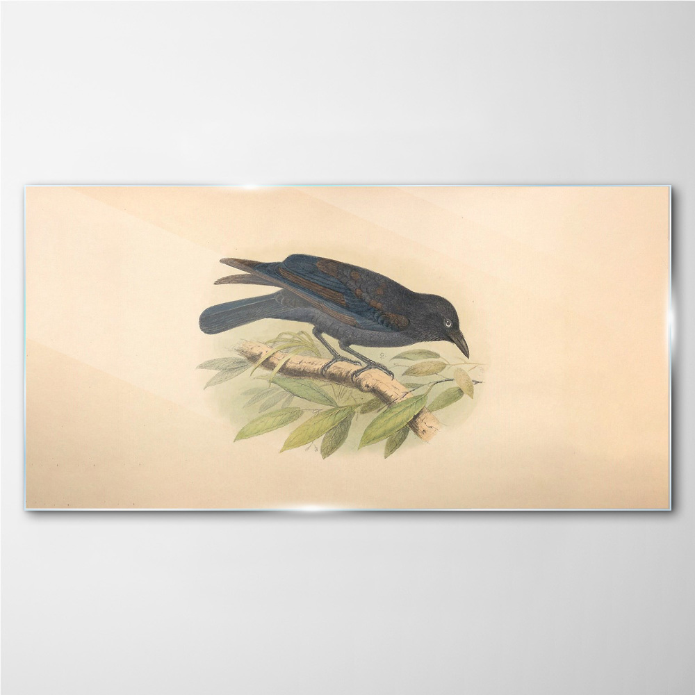 Tablou sticla Pasăre neagră pe o ramură