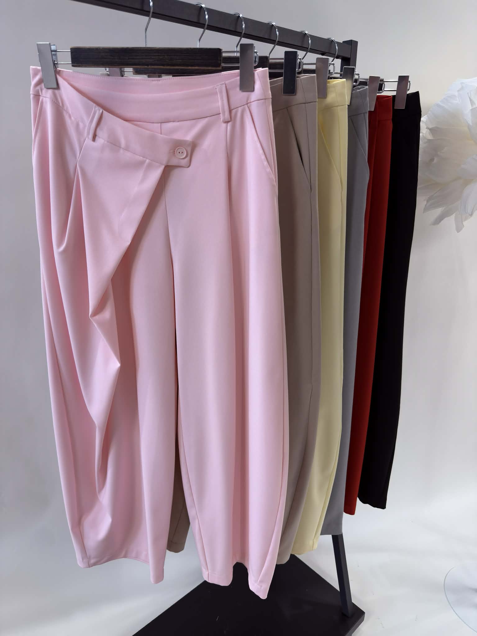 BY O LA LA...! SPODNIE ASYMETRYCZNA ZASZEWKA TERRY ŻÓŁTE (SUNSHINE)