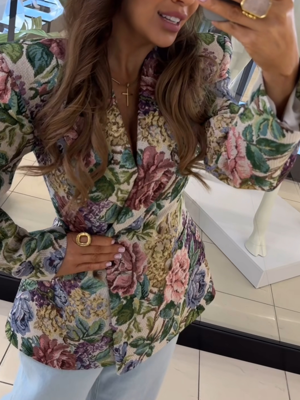 EMO MARYNARKA W KWIATY ECRU/MULTICOLOR