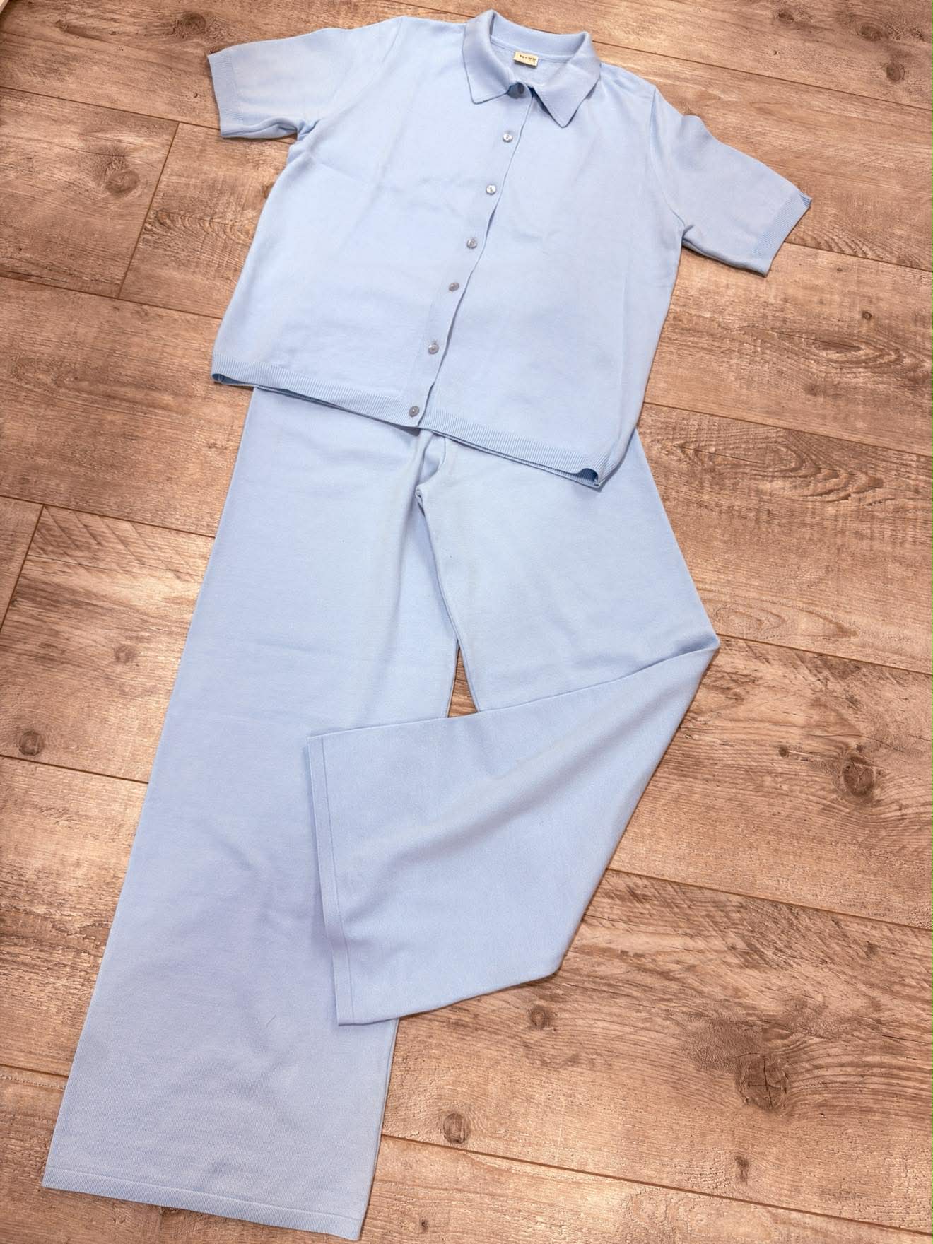 BY O LA LA...! KOMPLET DZIANINOWY BLUZKA + SPODNIE NIEBIESKI