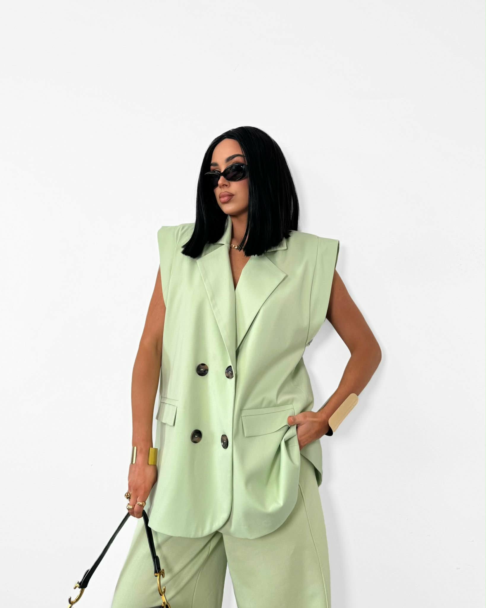 LA MILLA DŁUGA KAMIZELA OVERSIZE Z PODUSZKAMI PISTACJA