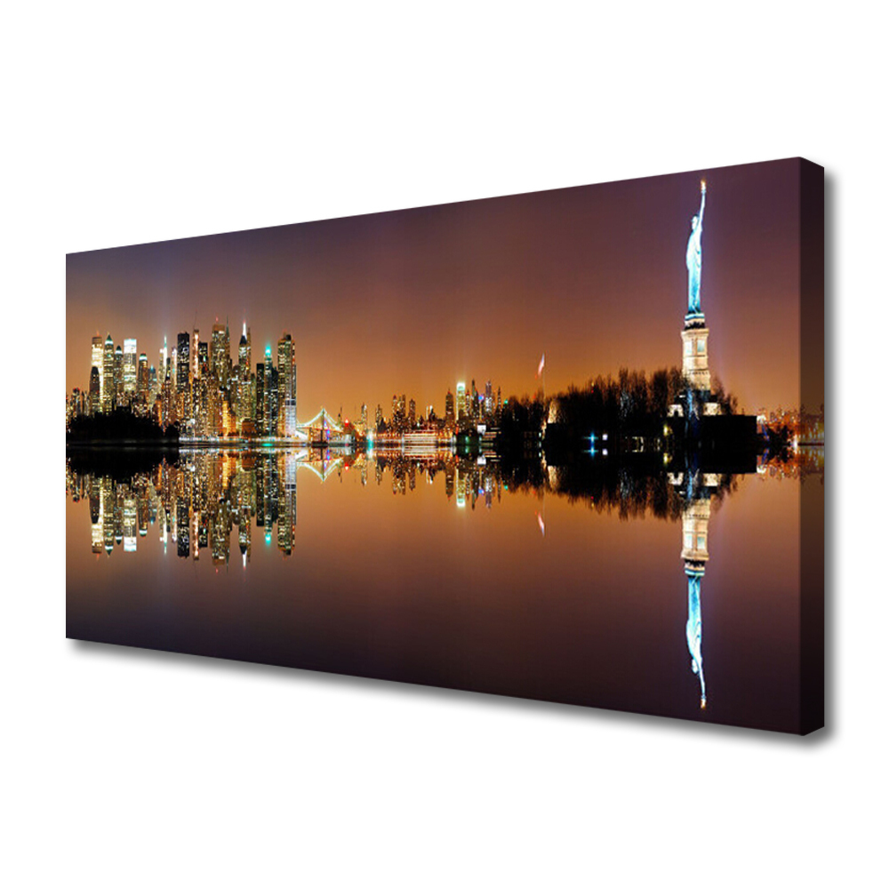 Tablou pe panza canvas Munții Oraș Case Gri Albastru Galben 100x50 cm