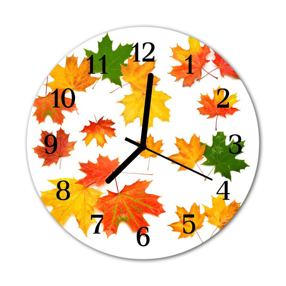 Ceas de perete din sticla rotund Frunze Natura Orange fi 30 cm Negru