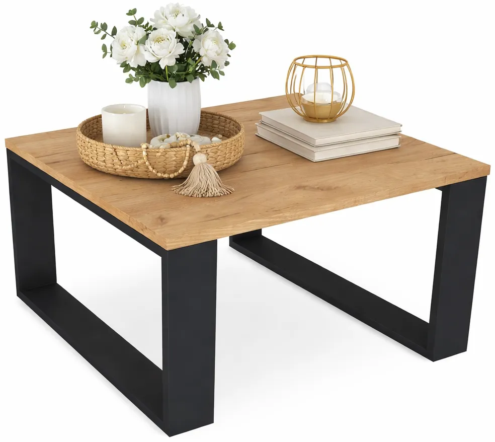 Nowoczesna kwadratowa ława kawowa dąb artisan + czarny - Fareo 5X