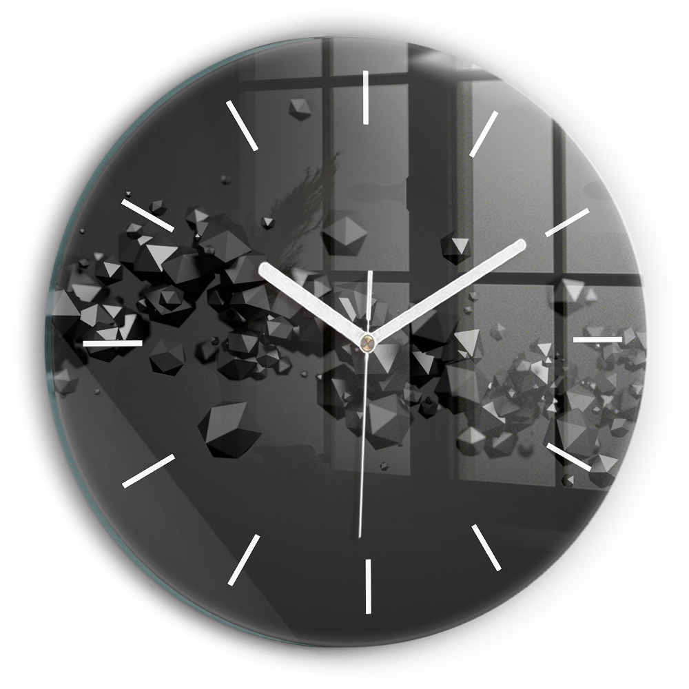 Kulaté skleněné hodiny s fotkou Černá abstrakce