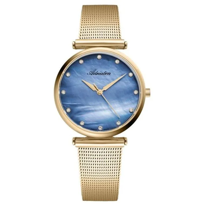 ADRIATICA Zegarek damski Adriatica złoty bransoleta mesh kryształki i masa perłowa A3712.114ZQ/T