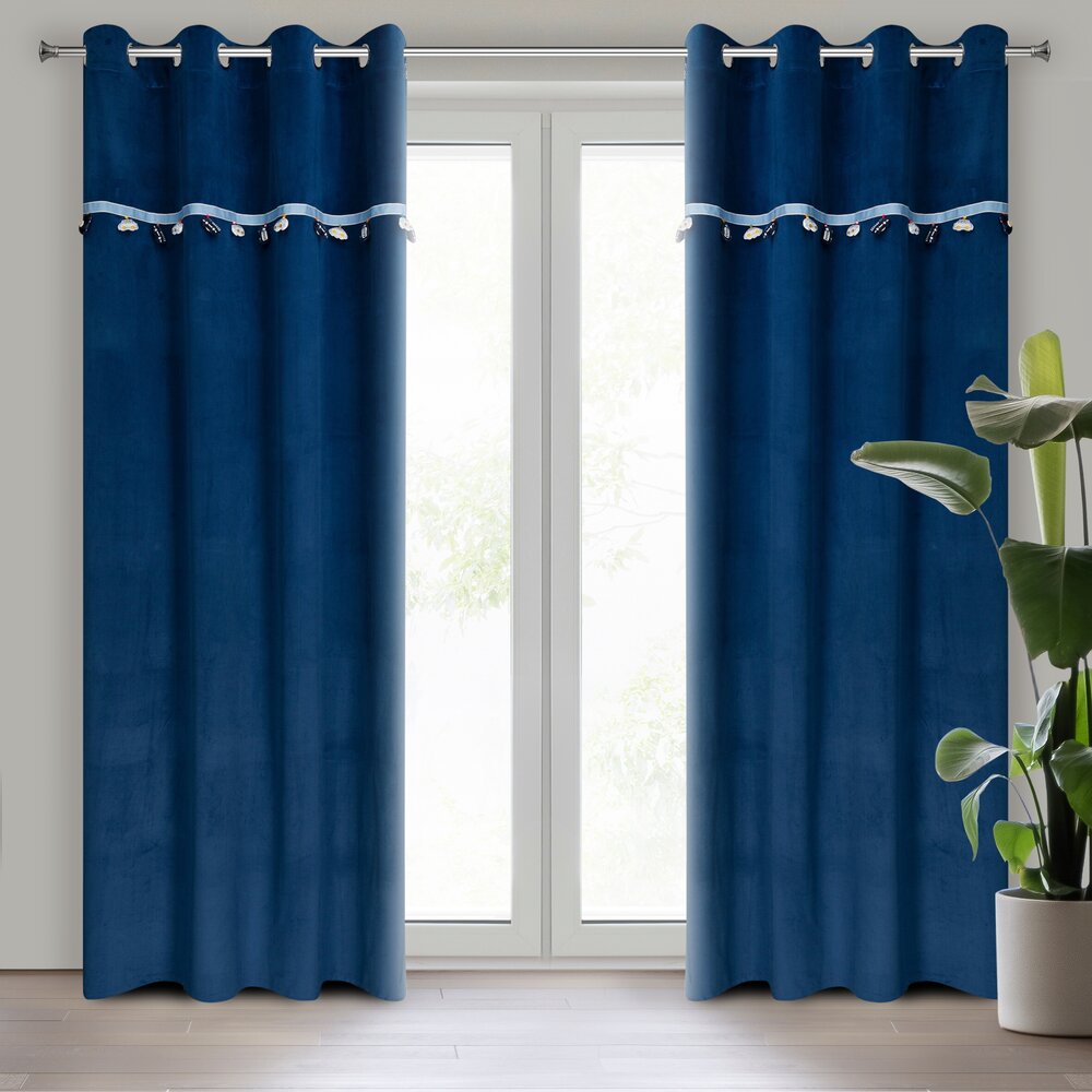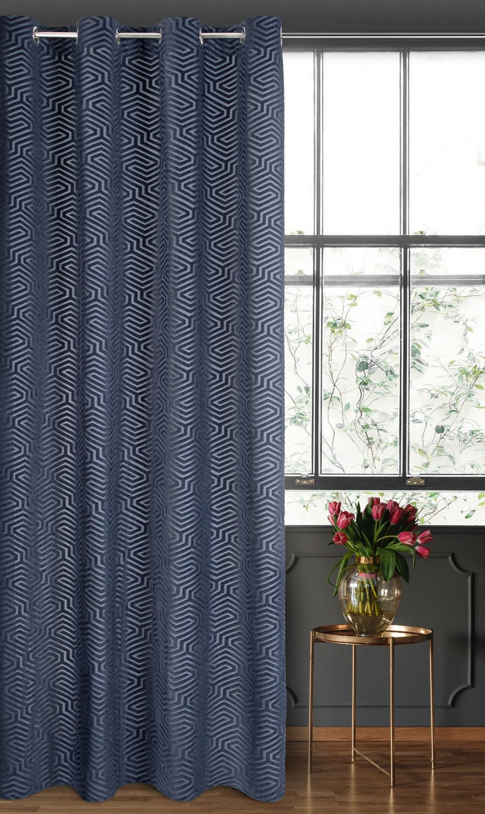 Zasłona gotowa na przelotkach CAR 140x250 Eurofirany granatowa z dekoracyjną taśmą z wiszącymi