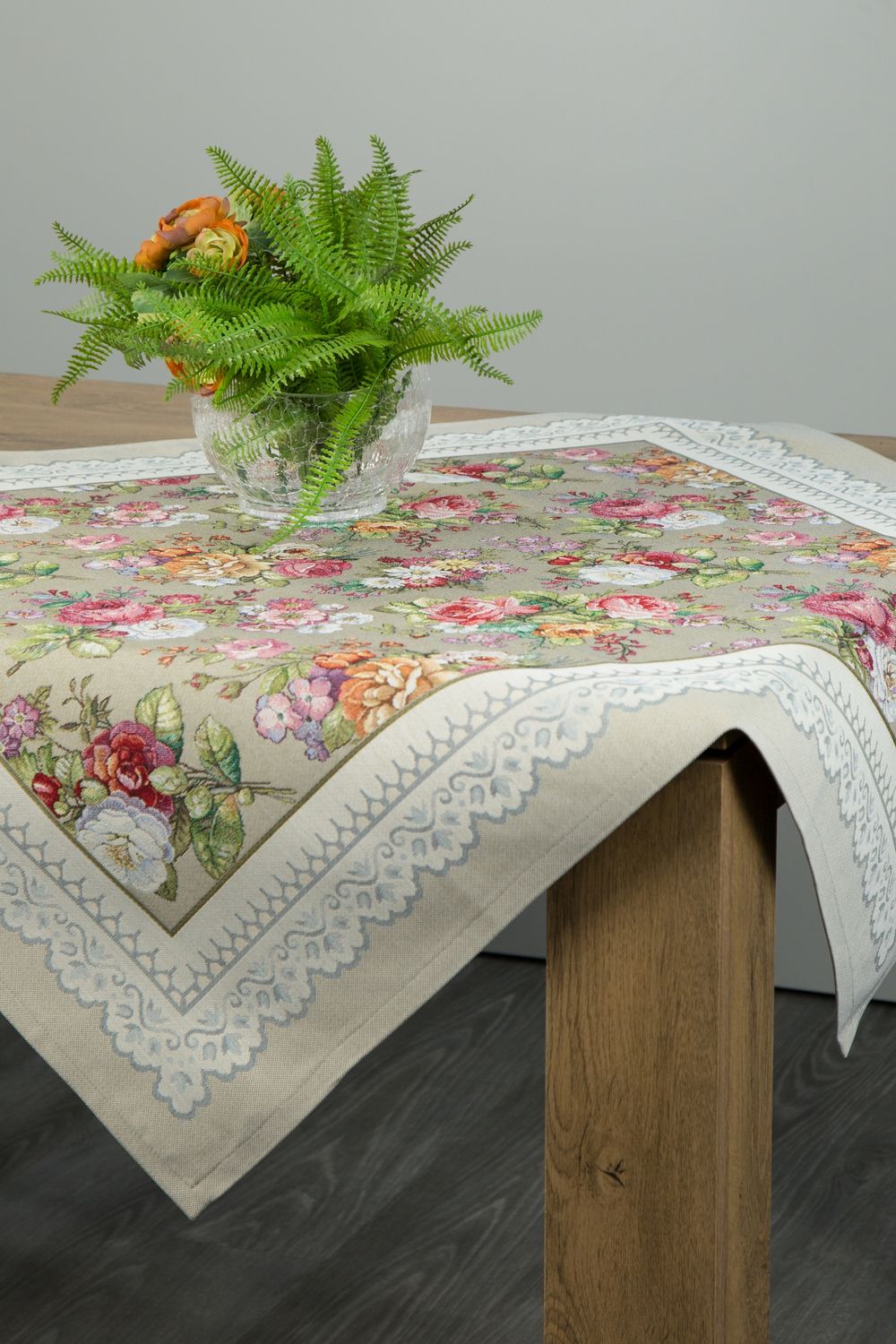 Obrus dekoracyjny gobelin 100x100 Eurofirany oliwkowy w róże