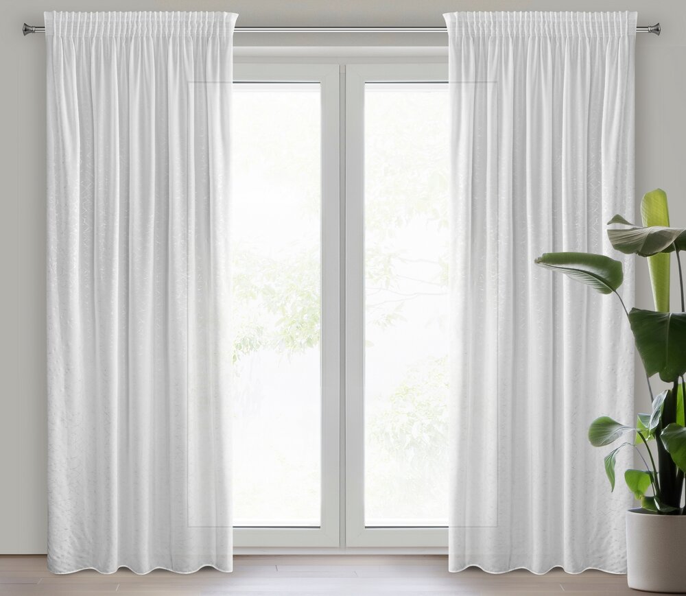 Firana gotowa na taśmie ROXI 140x270 Eurofirany biała ze srebrnym nadrukiem