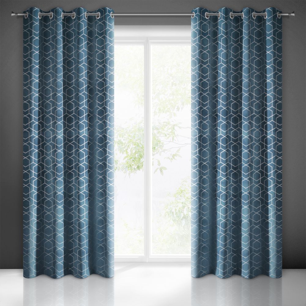 Zasłona gotowa na przelotkach MANDI 140x250 Eurofirany granatowa srebrny nadruk