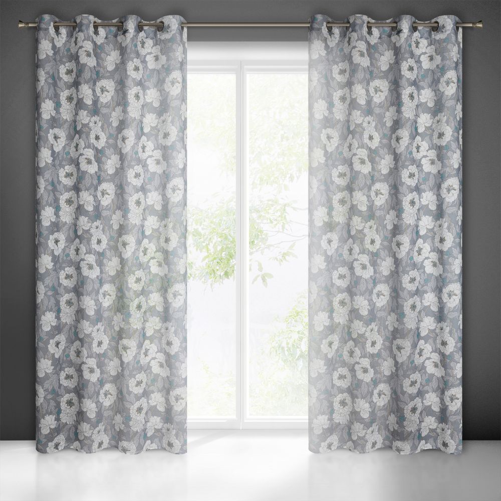 Zasłona gotowa na przelotkach SANDRA 140x250 Eurofirany biało popielata w kwiaty