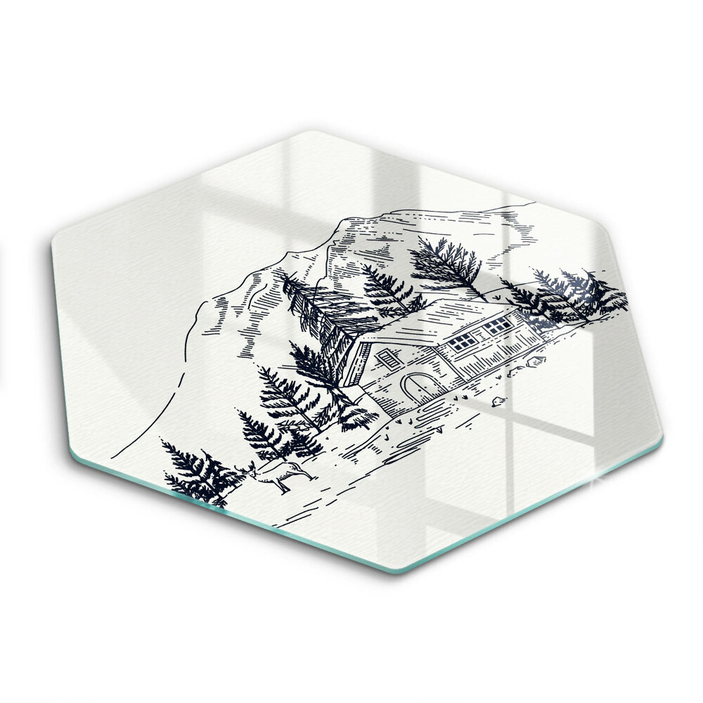 Cache plaque de cuisson Dessin d'un chalet à la montagne